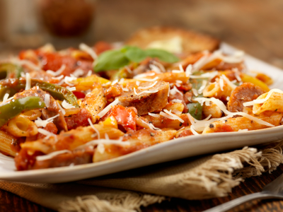 Baked Pasta with Sausage, Tomatoes and Mushrooms
